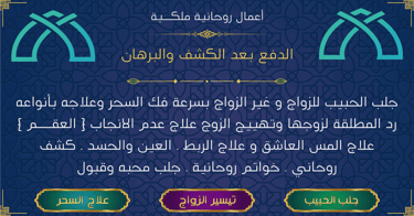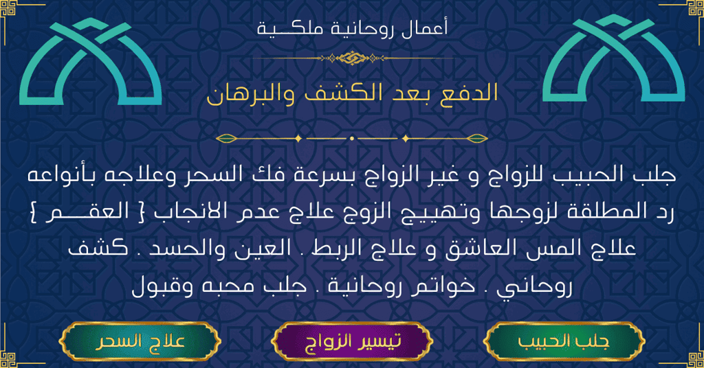 اعمال حقيقه مضمونه الدفع بعد النتيجة و برهان صحت العمل الكشف و استشارة مجاني. جلب الحبيب خلال ساعات. الأفضل و الاقوى في العالم العربي. خبرات وأعمال ورثة الأجداد نقوم بها. سحر لتفريق بين اثنين، علاج الحمل و المس الشيطاني العاشق المتسلط. قوة ملوك روحانية و سفلية متاحة الآن للتواصل المباشر.
