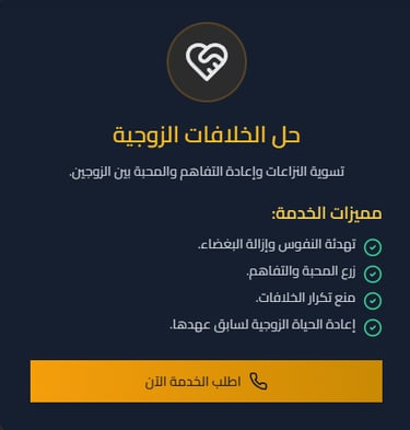 نقدم لكم باقة متكاملة من الأعمال الروحانية المجربة والمضمونة بإذن الله، لمعالجة كافة المشاكل وتحقيق رغباتكم. كل خدمة نقدمها تتم بسرية تامة وبأعلى درجات الاحترافية.
